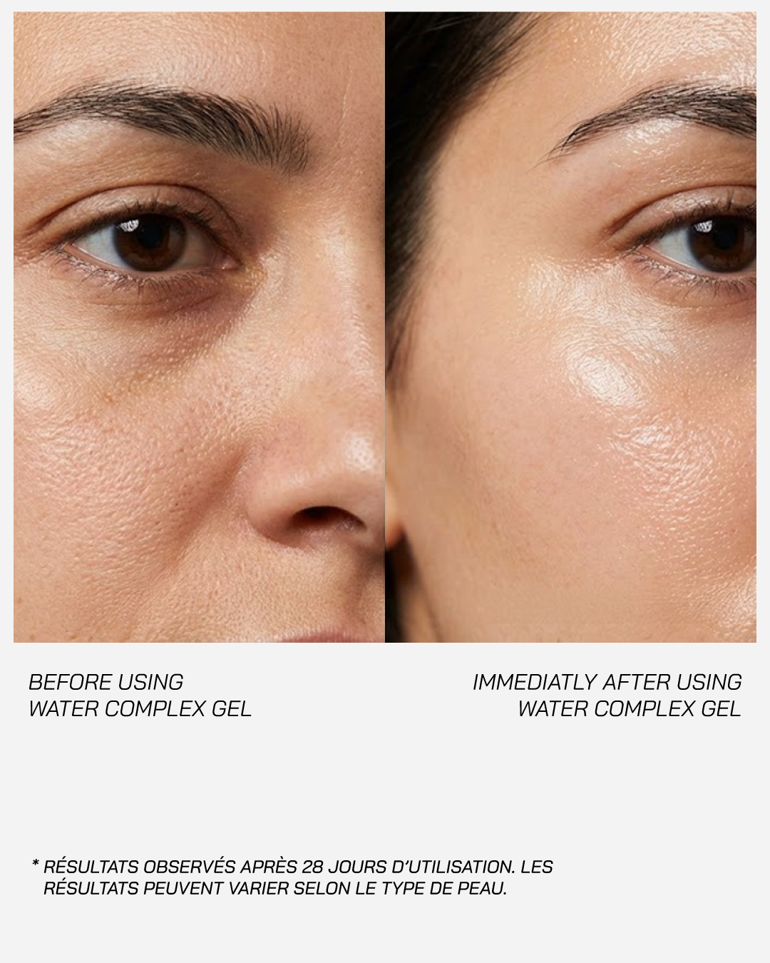 Prélever une noisette de Water Complex Gel et répartir uniformément sur le visage et le cou.